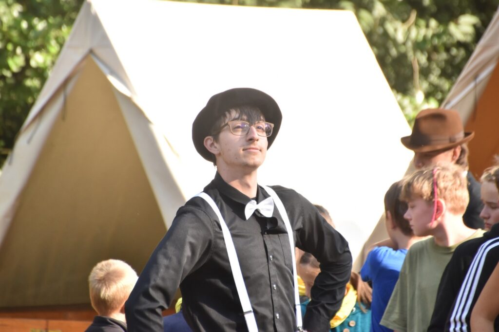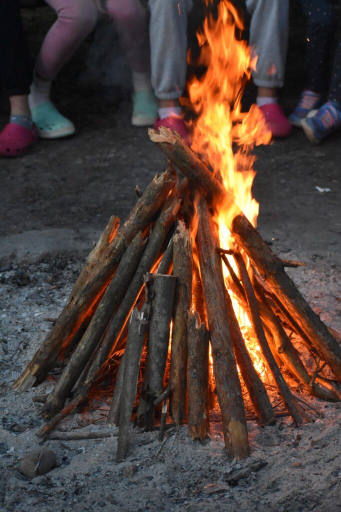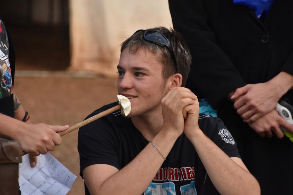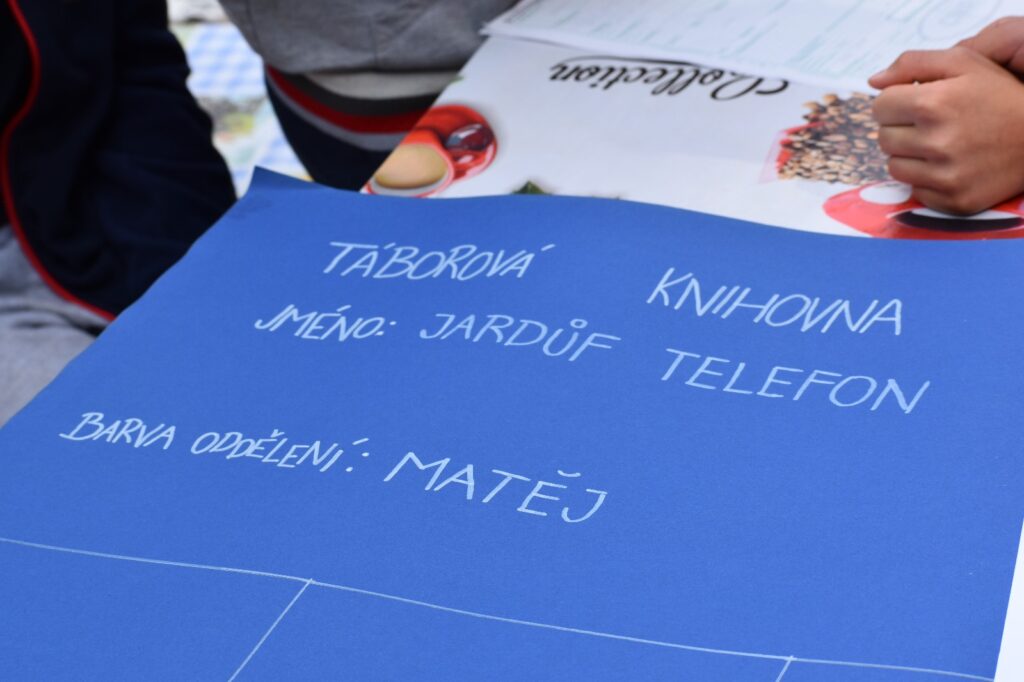 Vyhlašování výsledků celotáborovky a stříhání o talíře